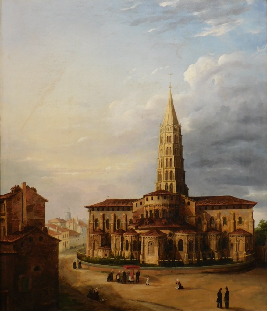 Quand vous irez visiter l’exposition sur les Fouque-Arnoux à Saint Gaudens passez à la basilique Saint Sernin de Toulouse. En 1898, Joseph-Jacques Fouque a racheté des parts dans une fabrique de céramique situé derrière la basilique Saint Sernin. Progressivement il en deviendra le seul propriétaire. Le batiment du magasin est devenu ensuite fabrique. Il a depuis été détruit et remplacé par un batiment en brique rouge. Un tableau fait par Claire Arnoux, petite-fille de Joseph-Jacques montre la vue de Saint Sernin que l’on pouvait avoir depuis la fabrique.