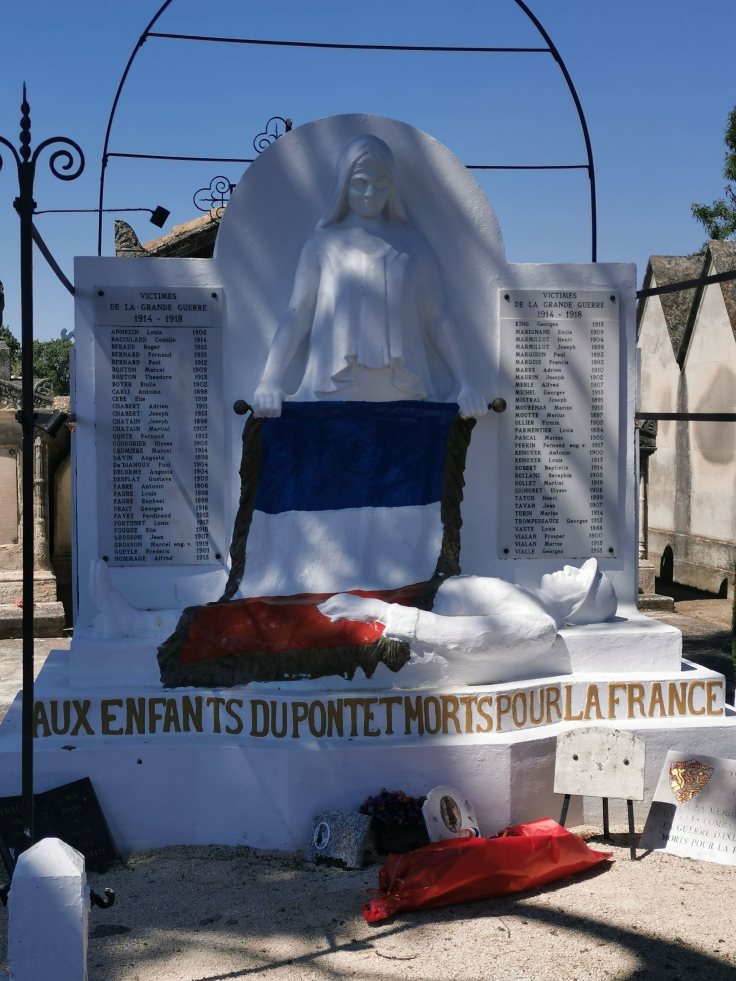 Dès 1920, ce cimetière avait été doté d’un monument aux morts. L’agglomération n’était pas encore une commune, mais les habitants avaient tenu à se distinguer d’Avignon et avait fait construire ce monument. Ce beau monument fut conçu par le sculpteur pontetien Gaston Desprez et financé par une souscription auprès des habitants. Déjà Elie Fouque, mort à la guerre, apparaissait sur la liste des soldats.