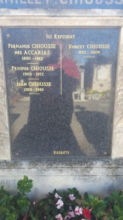 Les Chiousse et les Fouque devaient être liés dès cette époque car ils décidèrent d’acheter deux concessions perpétuelles, l’une à côté de l’autre et à côté du monument. « Comme cela on entendra le clairon au moins une fois par an le 11 novembre et il y aura de la visite. » disait Fernande.