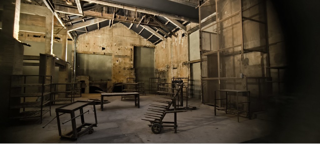 Des panneaux explicatifs fort bien faits expliquent cette histoire. Mais les malheureux qui y sont passés n’ont laissés que peu de traces : quelques graffitis grattés sur les murs. Finalement Ce que l’on voit le mieux, c’est la tuilerie, ses murs en briques et ses toits en tuiles rouges, les convoyeurs à bande, les fours. Tout donne l’impression d’une improvisation totale. Faute de temps, on a pris le seul bâtiment disponible pour y enfermer les gens, sans conforts, sans équipements.